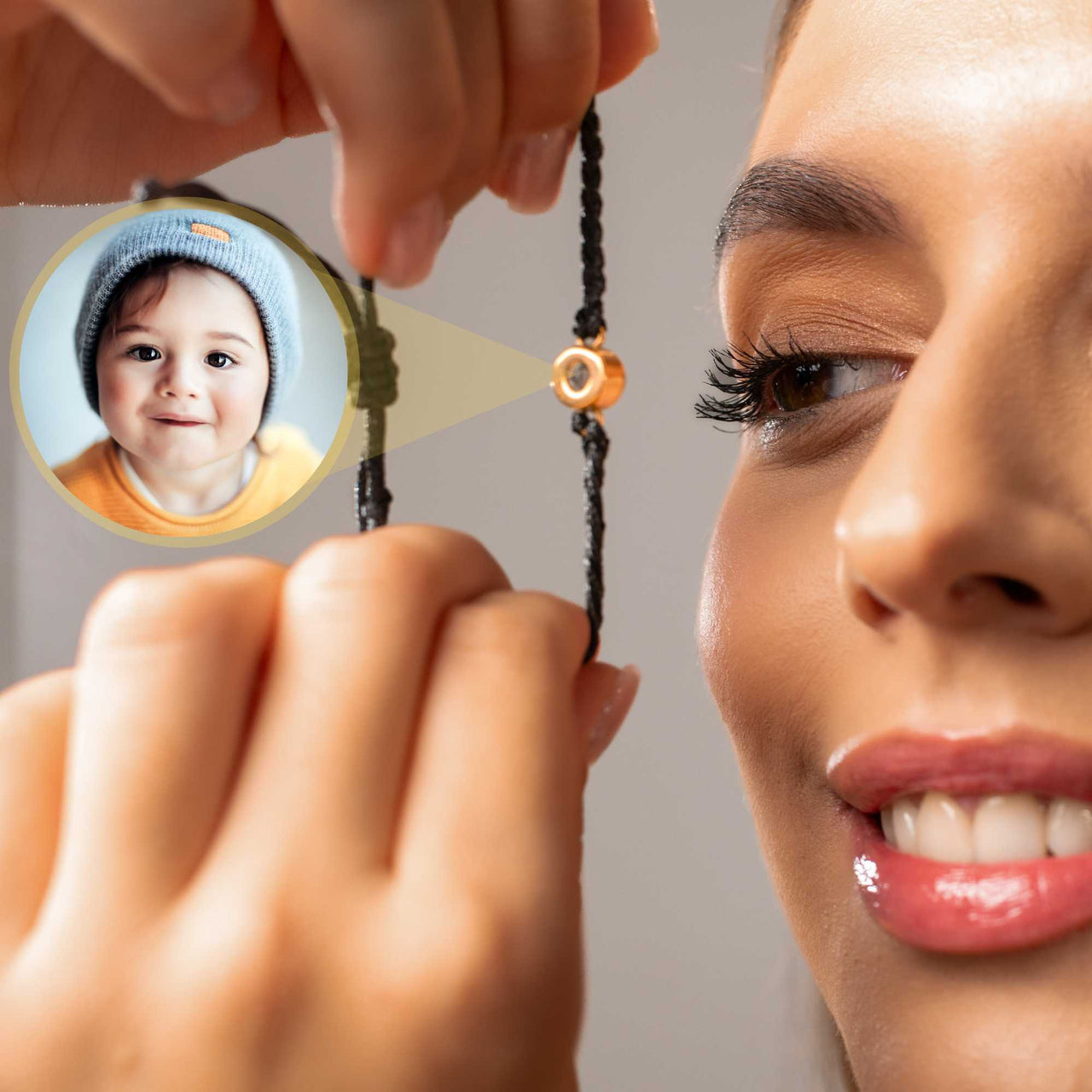 Each bracelet carries an intimate touch with your chosen picture inside. Peek within or utilize your smartphone's camera to uncover the hidden image.