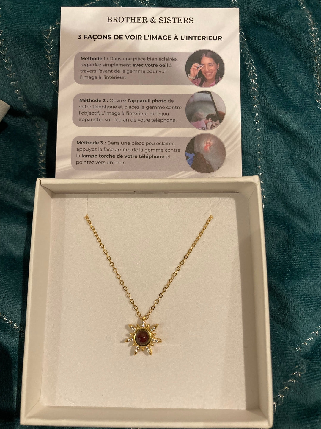 Each necklace carries an intimate touch with your chosen picture inside. Peek within or utilize your smartphone's camera to uncover the hidden image.